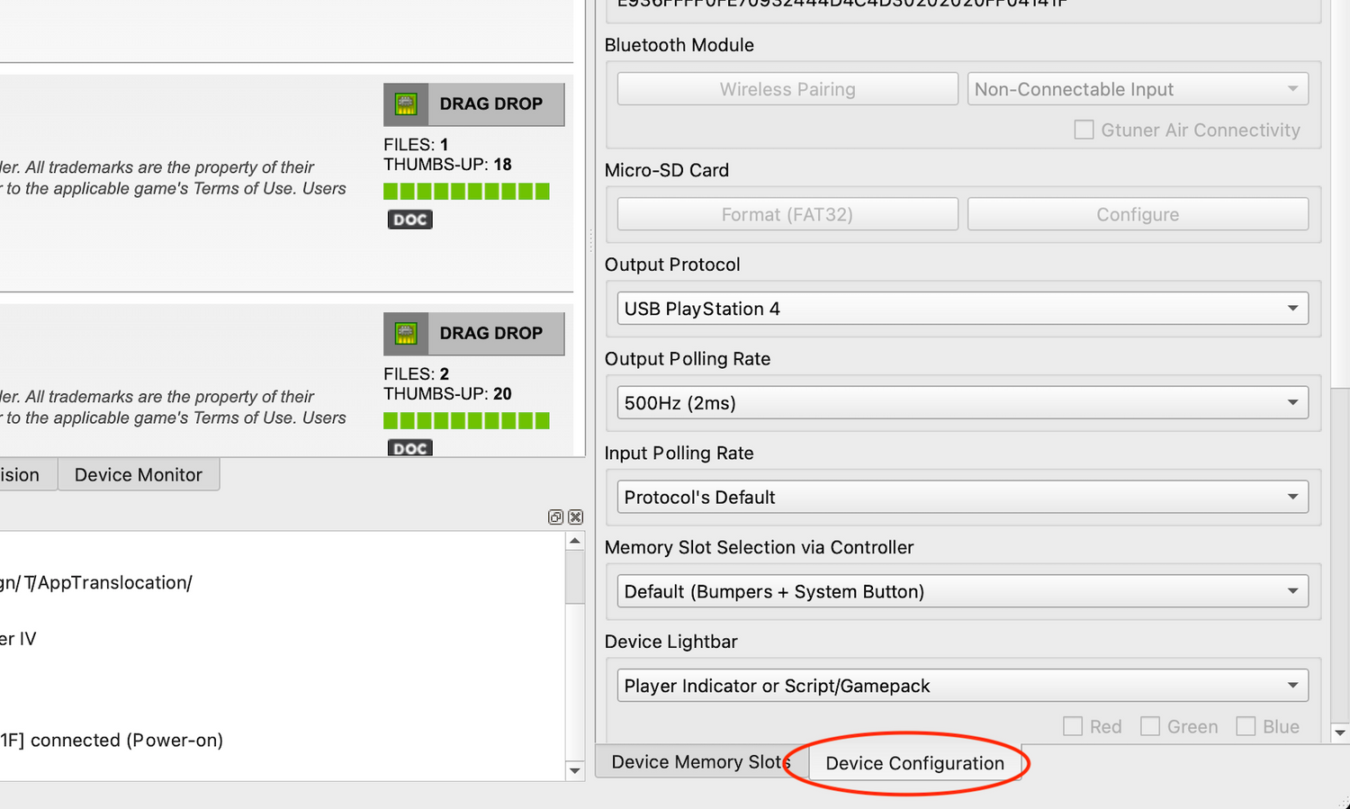 Open the Gtuner IV software on your computer and click “Device Configuration.”